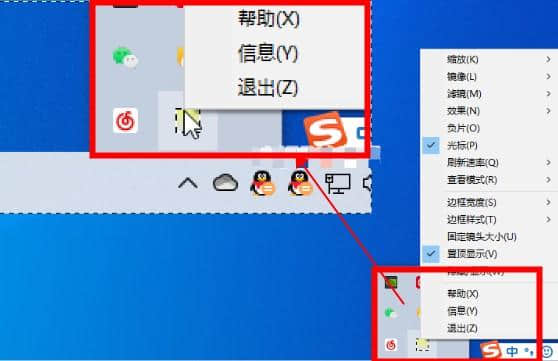 2.在托盘区域创建一个图标,并在屏幕上显示一个矩形放大镜。