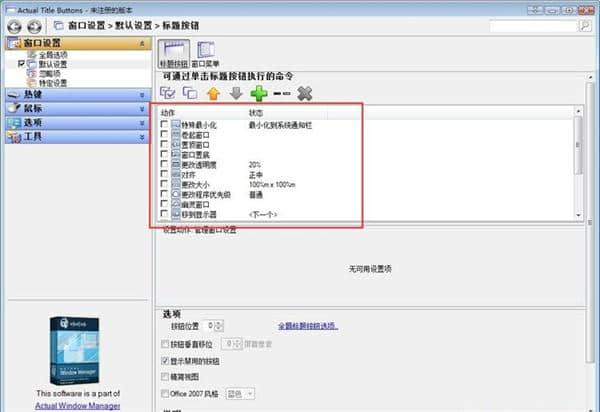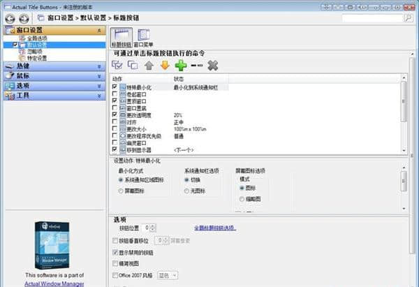 Actual Title Buttons软件下载使您能够快速向窗口添加各种按钮。Actual Title Buttons设置窗口按钮增强工具可以给你带来更好的窗口标题栏按钮设置,增强你的窗口功能。更多不同的窗口操作模式可以让你更快地设置你需要的窗口效果。