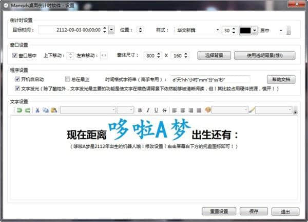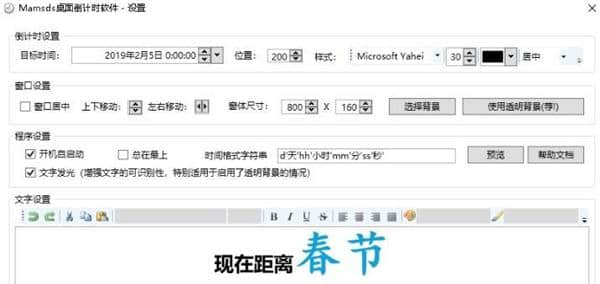 mamsds软件下载,一个可以在桌面倒数的软件工具。mamsds桌面倒计时工具可以给你带来更好的桌面倒计时软件工具。这里的所有内容都可以用来快速设置你需要的桌面倒计时功能。设置各种不同的功能非常方便。配置您的插件工具选项,以便您可以选择所需的倒计时功能。
