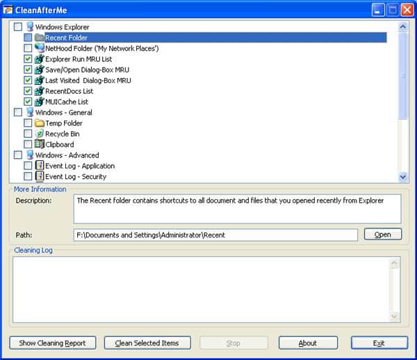 CleanAfterMe软件下载是一款可以高效清理电脑历史的软件工具。CleanAfterMe(历史清理工具)客户端可以给你带来很多非常方便易用的清理电脑历史的方法。各种文档和软件中所有最近打开的服务都可以快速清理。你可以在这里找到更方便的管理服务。