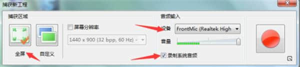 6.这里,可以设置录制区域和音频源。