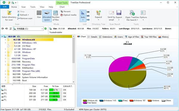 各种硬盘空间数据可视化管理,所有功能都非常方便。