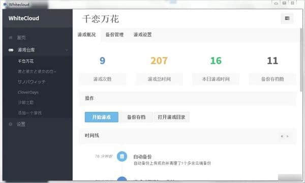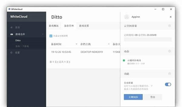 Whitecloud软件下载为您带来更好的专业本地游戏档案管理库软件工具。Whitecloud(本地游戏存档管理工具)客户端可以给你带来很多非常方便的本地游戏存档管理。这里所有的本地游戏存量都可以更好的管理,所有的程序内容都可以更好的管理,本地游戏的存档管理非常方便。