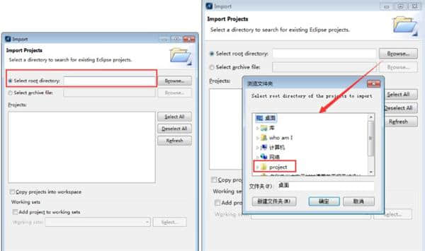 4.继续在新窗口中选择浏览以查找准备好的项目。