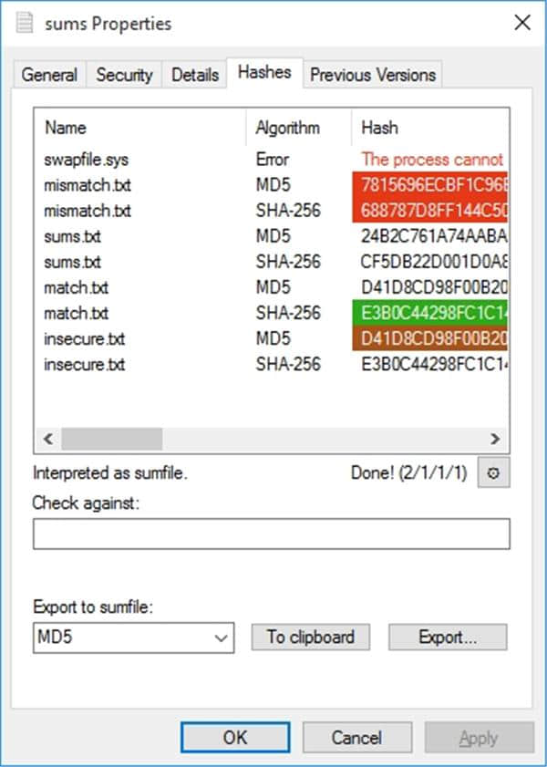 因此,您可以很容易地从文件属性中获取哈希值。