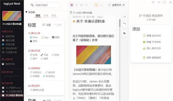 TagLyst软件下载,最便捷的基于标签的智能高效文件集成工具,TagLyst(基于标签的文件管理器)客户端便捷且优质高效的文件管理器,无论是个人还是企业的文件管理都非常方便,可以更好的管理自己需要的文件和资料,轻松管理并快速查看,而且基于标签的管理服务也更加全面。