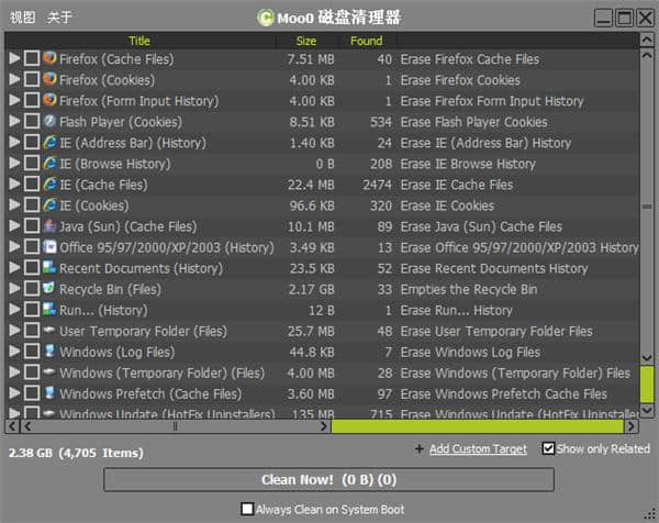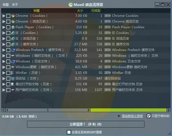 Moo0磁盘清理器软件下载,专业、方便、可靠的磁盘数据清理软件中心,Moo0磁盘清理器(定制数据清理工具)可以帮助你清理更好的数据功能,文件的所有数据内容都可以非常方便的管理。您也可以在这里管理定制的磁盘数据清理,各种数据都可以轻松删除和优化。