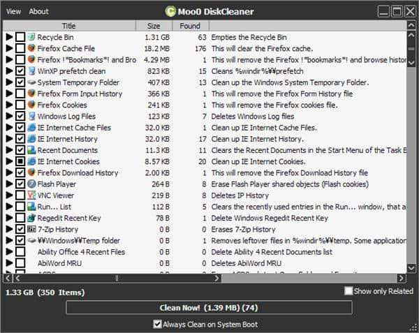 Moo0磁盘清理器支持如下操作系统:WindowsXP,Windows7,Windows8,Windows10,Windows11