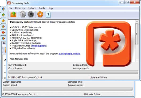 Passcovery Suite软件下载,专业密码文件恢复工具,Passcovery Suite(密码恢复工具)客户端让所有注册后因为长时间没有使用而忘记密码的用户,快速恢复自己需要的密码,所有密码文件都能快速恢复,不用担心忘记密码。