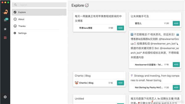 Dinosaur Rss软件下载,完全开源的多功能RSS小说阅读器软件,Dinosaur Rss(开源阅读器)客户端可以让你去到一个非常轻松又节省空间的阅读器软件工具,开源客户端的服务功能可以更好的帮助你更轻松的完成阅读资源,而多个资源所占用的空间可以帮助你非常方便轻松的解决你所需要的专业RSS阅读服务模式。