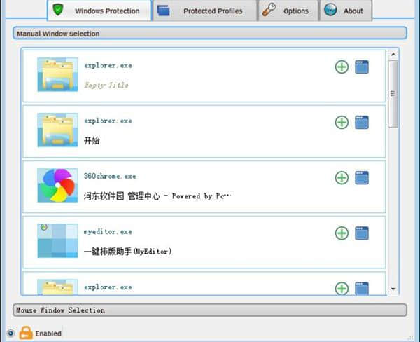 3.通过加入保护列表来创建受保护应用程序窗口的列表。