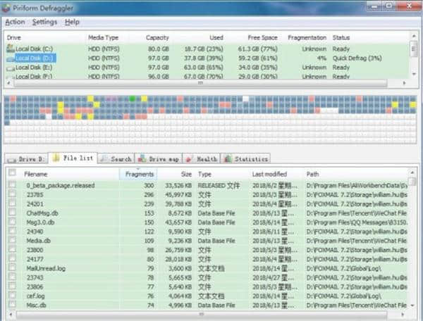 Defraggler软件下载,一个快速整理和优化硬盘空间大小的软件工具,Defraggler(磁盘整理软件)客户端可以帮助你更方便高效地整理你的磁盘空间。所有文件都非常方便快捷,所有功能都得到了充分优化。你想要的磁盘排序方式非常方便快捷,文件内容也更加全面。