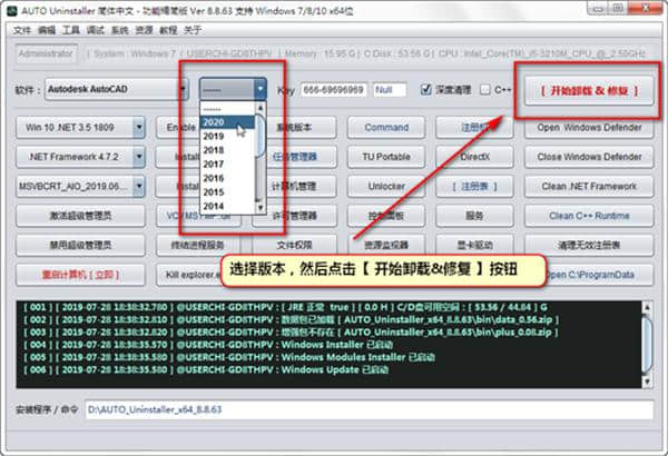 选择版本,然后单击[开始卸载和修复]按钮