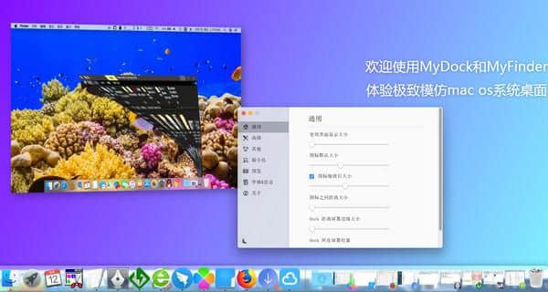 MyDock软件下载,使用mac桌面的dock bar窗口最方便的工具,MyDock(模仿MAC桌面工具)客户端的所有用户都可以通过这里的窗口轻松体验MAC的桌面工具,在这里可以有一个操作非常方便的DOCK bar,所有程序图标都可以轻松设置,让桌面更加美观。