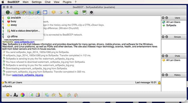 BeeBEEP软件下载,最方便的局域网聊天分享软件工具,BeeBEEP(局域网分享聊天工具)客户端可以给你带来更好的局域网分享下载工具,在这里你可以拥有非常轻松的聊天和实时通讯功能,而且你还需要保持相同的网络状态才能非常快速地进行实时通讯和数据传输,传输速度非常快。