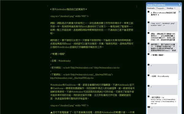 WriteMonkey软件下载,最全面的全屏文字编辑书写工具,WriteMonkey(无干扰书写工具)客户端为你带来了更方便、更优质的文字记录书写软件工具,在这里你可以为你带来更好的文字编辑功能。所有的服务方式都非常方便和优质,你可以快速找到你需要的所有写作方式。