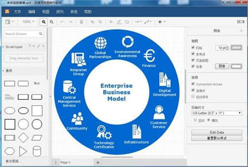 软件上集成了多种不同类型的矢量流程图素材,使得用户绘制的图形在任何角度都保持精致美观。