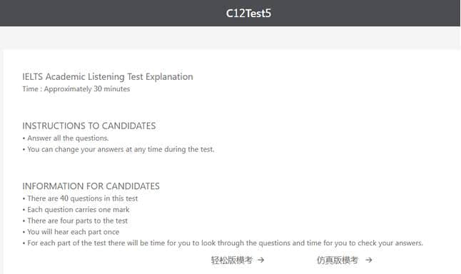 5.雅思学术听力讲解,时间:30分钟左右,考生讲解,回答所有问题,期间可以随时更改答案。