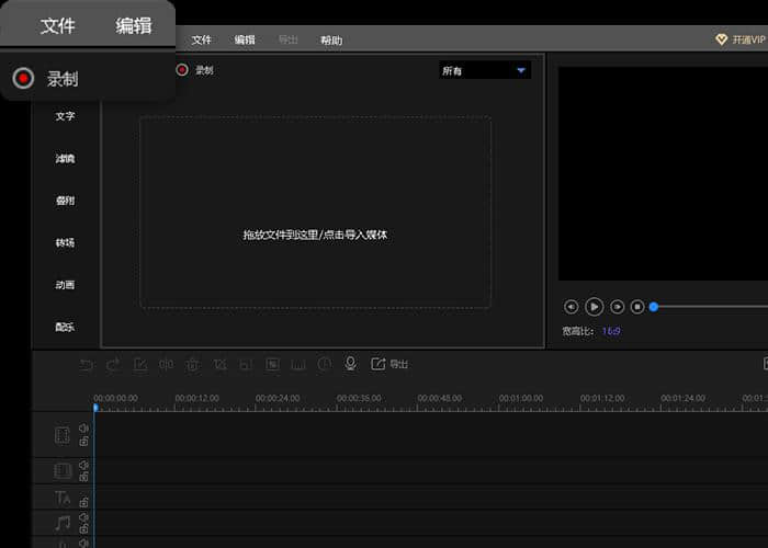 3.选择左侧字幕菜单添加字幕。添加音效、滤镜、转场、贴图等。,请切换到左侧菜单的相应功能。