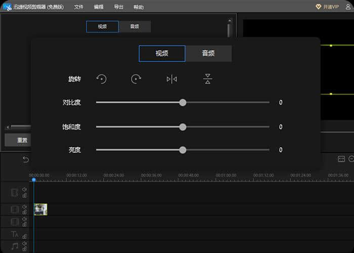 2.编辑:0.1 ~ 5倍速度调节,反向播放,画面旋转翻转,对比度、饱和度、亮度调节。