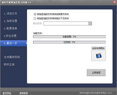 在此界面中,您可以选择保存加密文件的位置或更改加密文件图标。