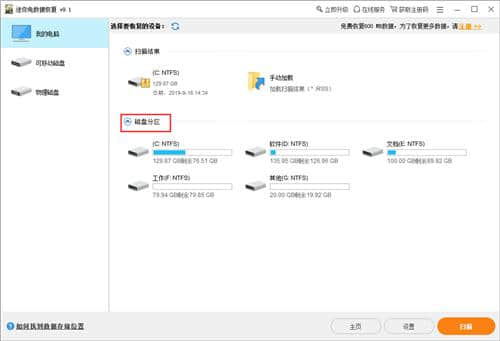 第二步:点击“我的电脑”选择需要恢复的磁盘并扫描。
