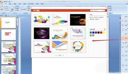 4.点按边栏中的“更改”。首先,把ppt变成一个漂亮的模板。选择所需的模板,然后单击右下角的“应用到文档”,查看ppt是否发生了很大变化。