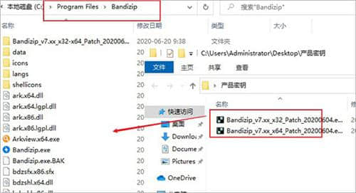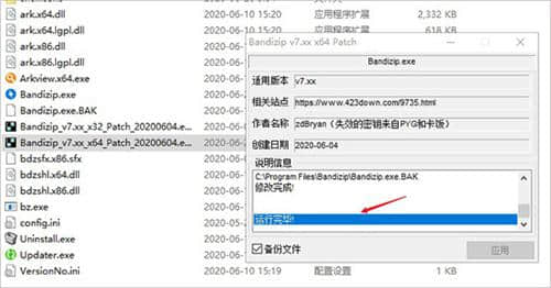 2.选择对应的数字bandizip破解补丁,放入软件安装目录,或者手动选择;
