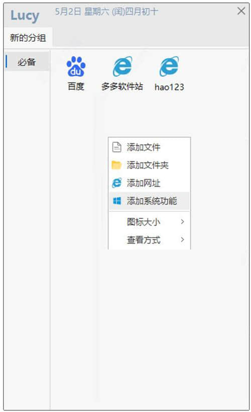 3.在分组下,如需要分组,可以添加文件、文件夹、网站、功能等。