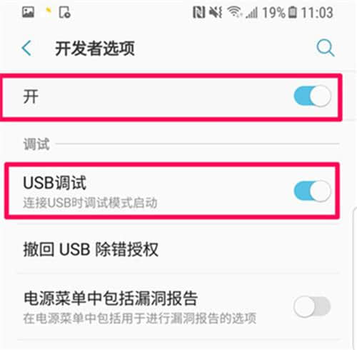4.进入[驱动程序选项]并打开[驱动程序选项]和[USB调试]