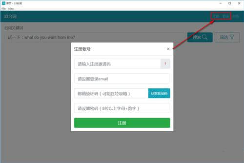 2.进入程序后,在程序右上角注册,使用注册的登录软件。
