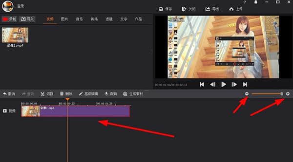 5.点按右边的加号-减号按钮来拉长剪辑,这样剪辑会更详细。