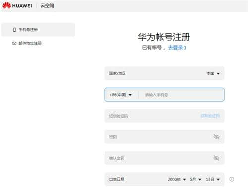 3.如果没有华为,可以用号码注册。