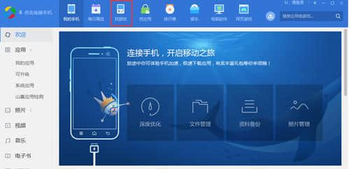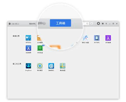 1.打开应用宝的电脑版,打开软件后点击顶部的[工具箱]选项。注意:请确保使用USB电缆连接到计算机。
