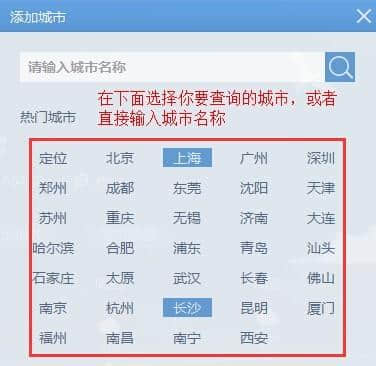 2.在弹出的对话框中选择城市。如果没有想要的城市,可以自己手动输入城市名称。