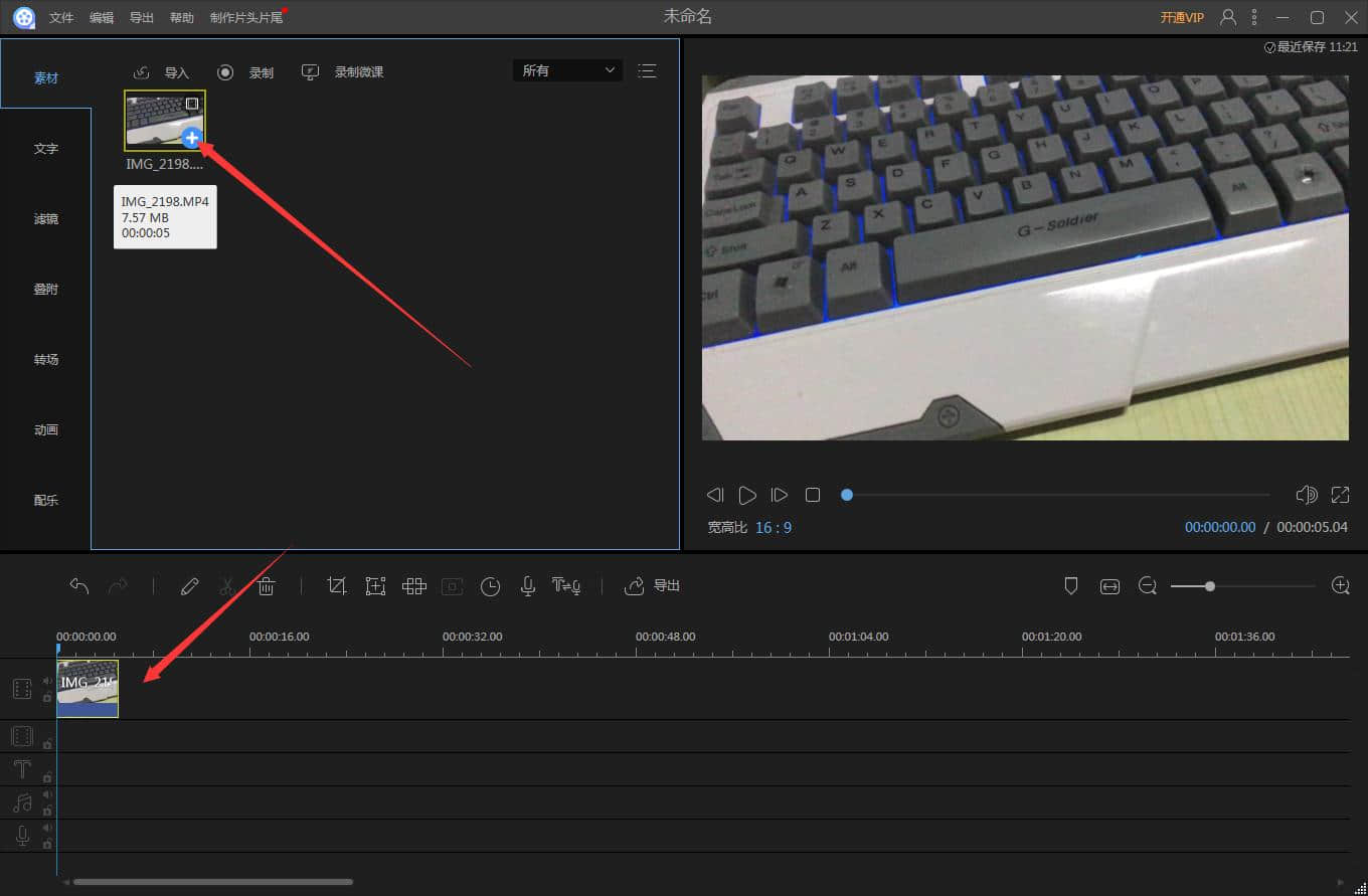 先后导入两个素材,将两个文件都拖到下轨,这样简单的合成就完成了。