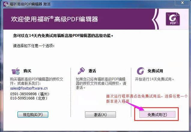 a)如果是安装后第一次运行,请选择“免费试用>:选择任意版本”进入程序主页;