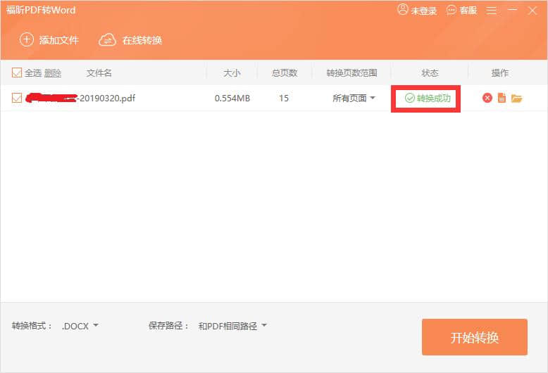 4.阜新pdf到word的转换完成后,可以看到“转换成功”的提示。