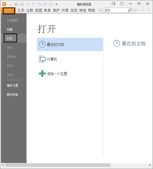 2.用此阅读器打开要编辑的文档,或单击“文件和打开”查找要编辑的文档。