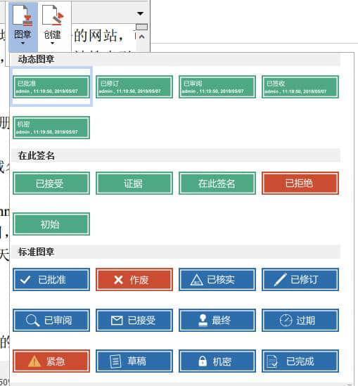 2.小编图章选项已选中。在弹出式图章选项中,您可以选择自己的图章。