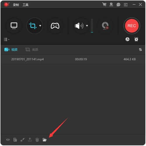 6.之后,我们可以在自动弹出的列表中看到之前录制的内容。我们单击下面的文件夹图标。