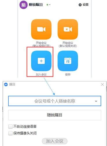 2.打开关注客户端,“登录”客户端,点击“加入会议”,输入会议ID,进入会议;如果有会议链接,可以直接点击会议链接,登录后加入会议。