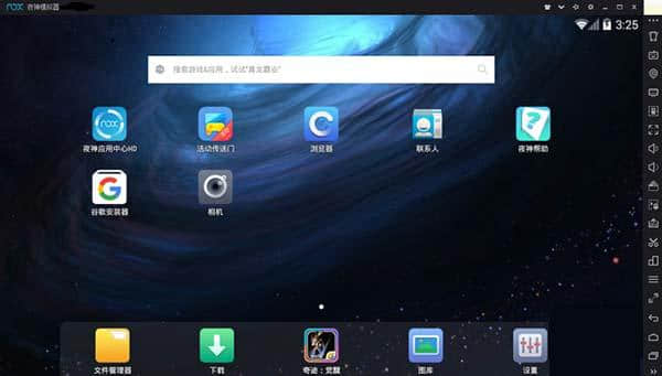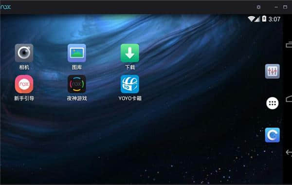 1.双击打开安装好的梦魇安卓模拟器。首先你会看到下面的界面,类似于中的界面,有各种显示,比如电量、时间、网络等。在界面上方。右侧有后退按钮、主页按钮、菜单按钮等。在这里,用户可以根据自己的喜好自动调整屏幕大小,直接拖拽即可。