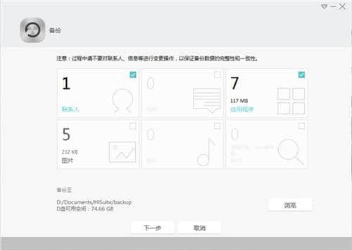 5.在升级HiSuite之前,软件会要求备份。如果已经备份,可以直接跳过这一步,继续下一步。