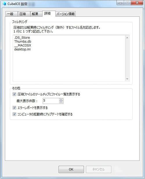 压缩文件解压缩后,像desktop.ini和ds _ store这样的文件将被混合。Cubeice提供了在压缩和解冻过程中过滤(删除)不必要文件的功能。过滤文件的列表可以从cubeice设置中更改。