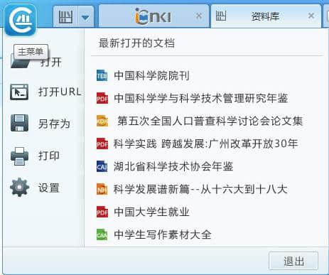 启动程序后,点击软件左上角的图标打开菜单栏,点击“打开”按钮,开始浏览或阅读文档,文档必须是以下文件类型:CAJ、PDF、KDH、NH、CAA、TEB;您可以再次保存和打印文档。