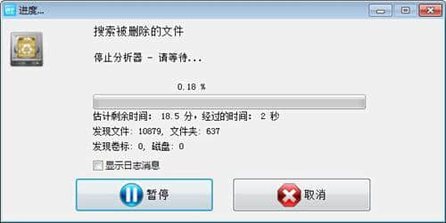 3.设置完成后,进入EasyRecovery程序的扫描界面,耐心等待一会扫描过程。