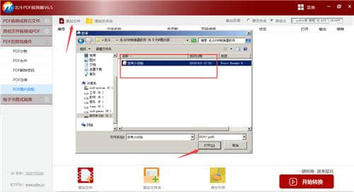 2.在PDF转换器软件中,进入软件界面,直接点击【添加文件】选择需要提取图片的PDF文件,依次添加。