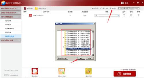 3.在北斗pdf转换器中,点击【输出目录】的【自定义】,选择提取图片文件的存储位置,点击【确认】