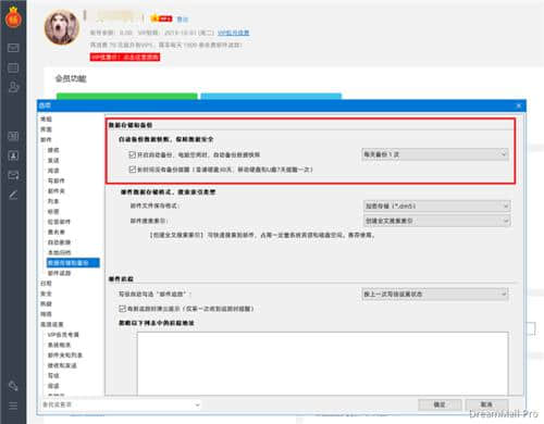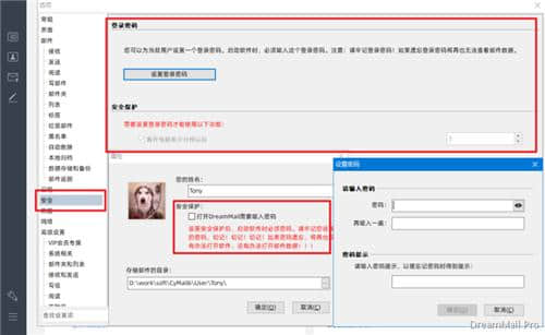 安全性:如果您检查,您需要输入密码才能打开DreamMail。